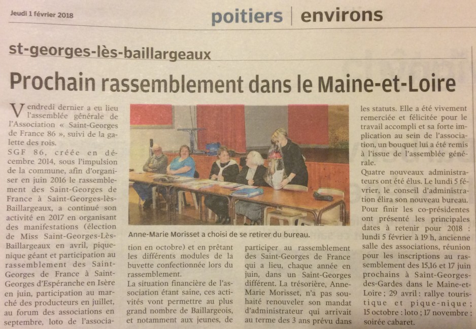 05/02/2018 Nouvelle République – Élection Bureau et Rassemblement St Georges des Gardes