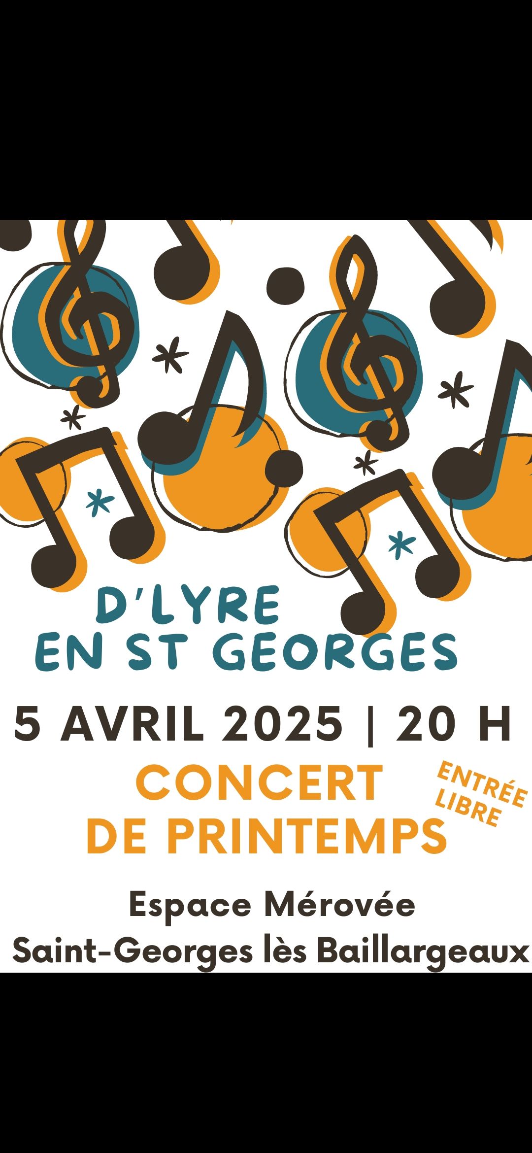 N’hésitez pas à diffuser cette information, cette affiche à vos amis, vos collègues, votre famille : prochain Concert de printemps de D’Lyre en Saint-Georges sur le thème des « Stars à cravate ».